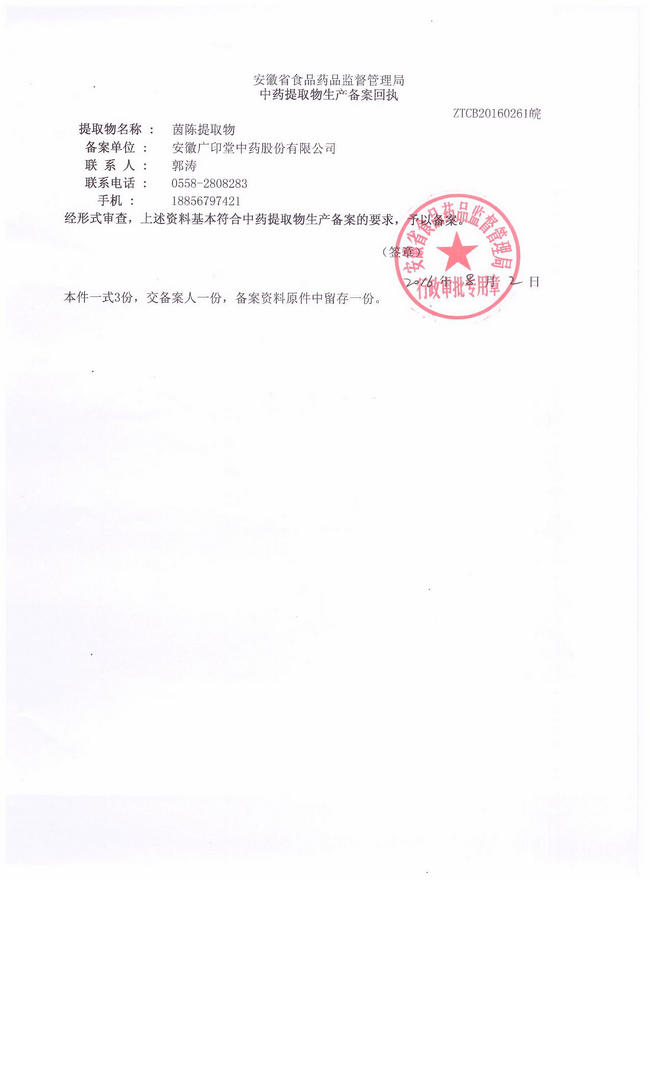 > 中藥提取物生產(chǎn)備案