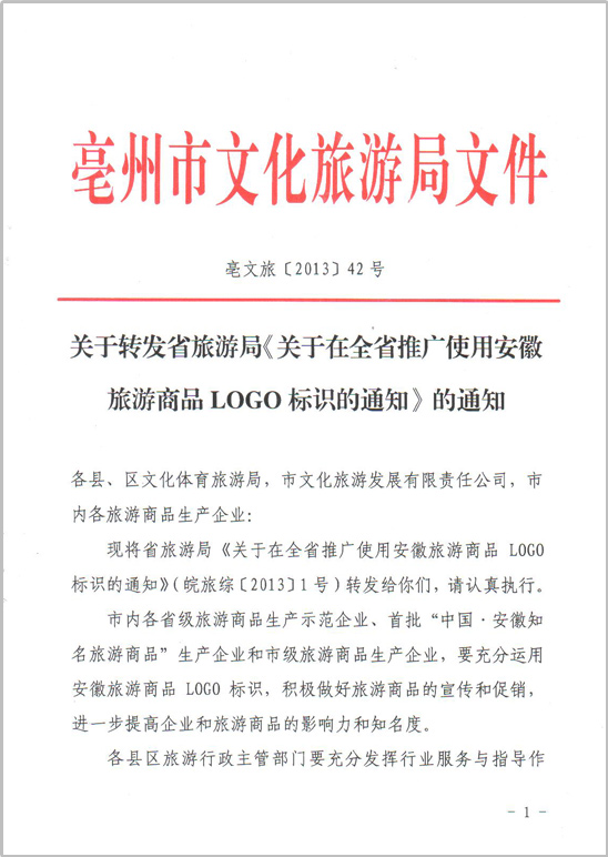 According to the culture tourism travel notification of bozhou city [2012]125:GUANGYINTANG was approved as the Bozhou City tourism commodity production enterprise.