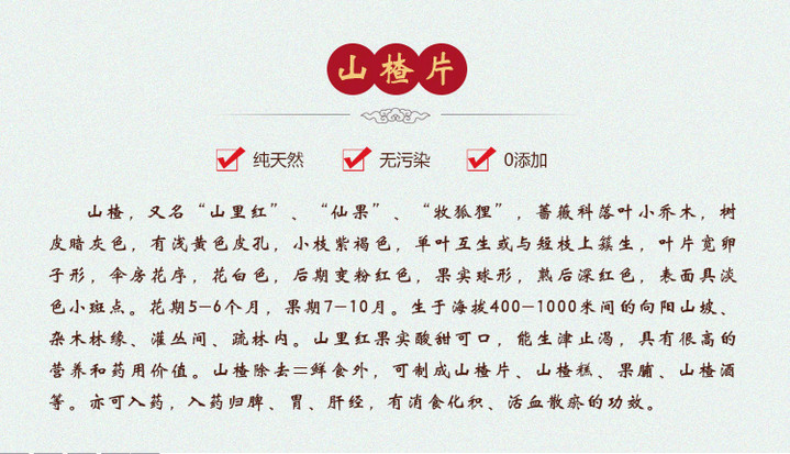 本品為薔薇科植物山里紅Crataegus pin,natiida Bge.var.majorN.E.Br.或山楂Crat