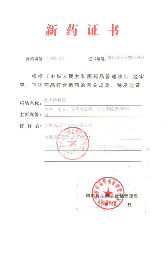祝賀廣印堂腦力靜顆粒獲國家藥監(jiān)局審核通過,批準文號:國藥準字Z 20153024