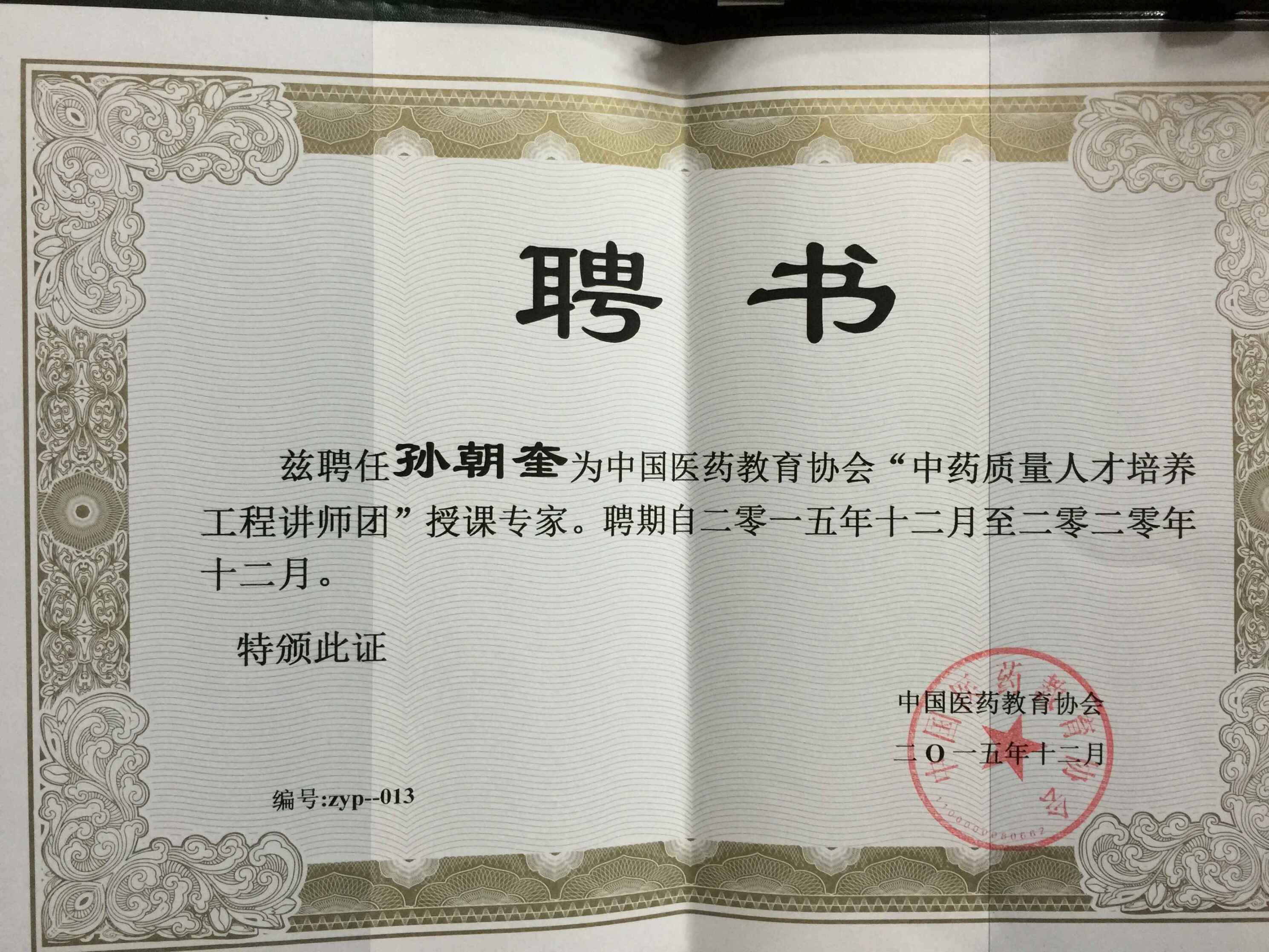 我公司質(zhì)量總監(jiān)孫朝奎被聘為國(guó)家級(jí)授課專家