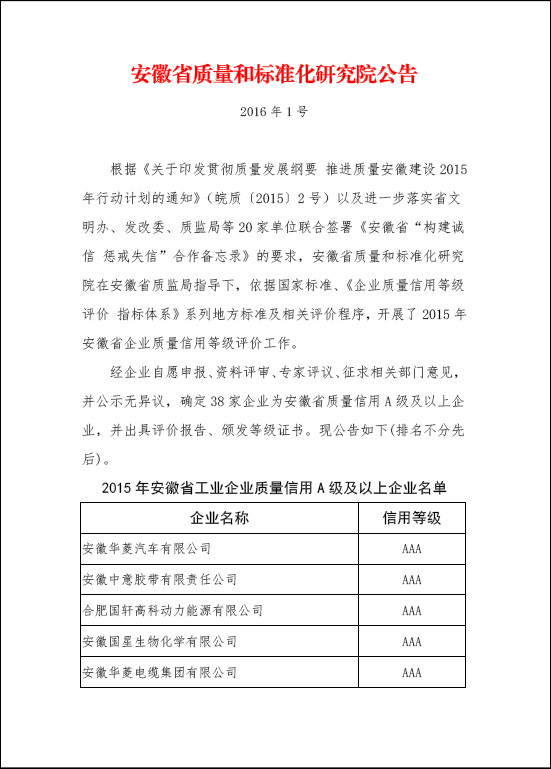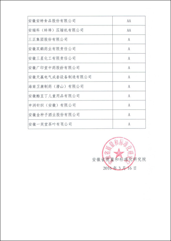 廣印堂公司榮獲安徽省質(zhì)量信用A級企業(yè)稱號
