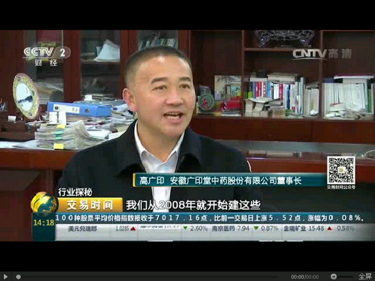 CCTV2財(cái)經(jīng)頻道專訪安徽廣印堂中藥股份有限公司董事長(zhǎng)高廣印先生